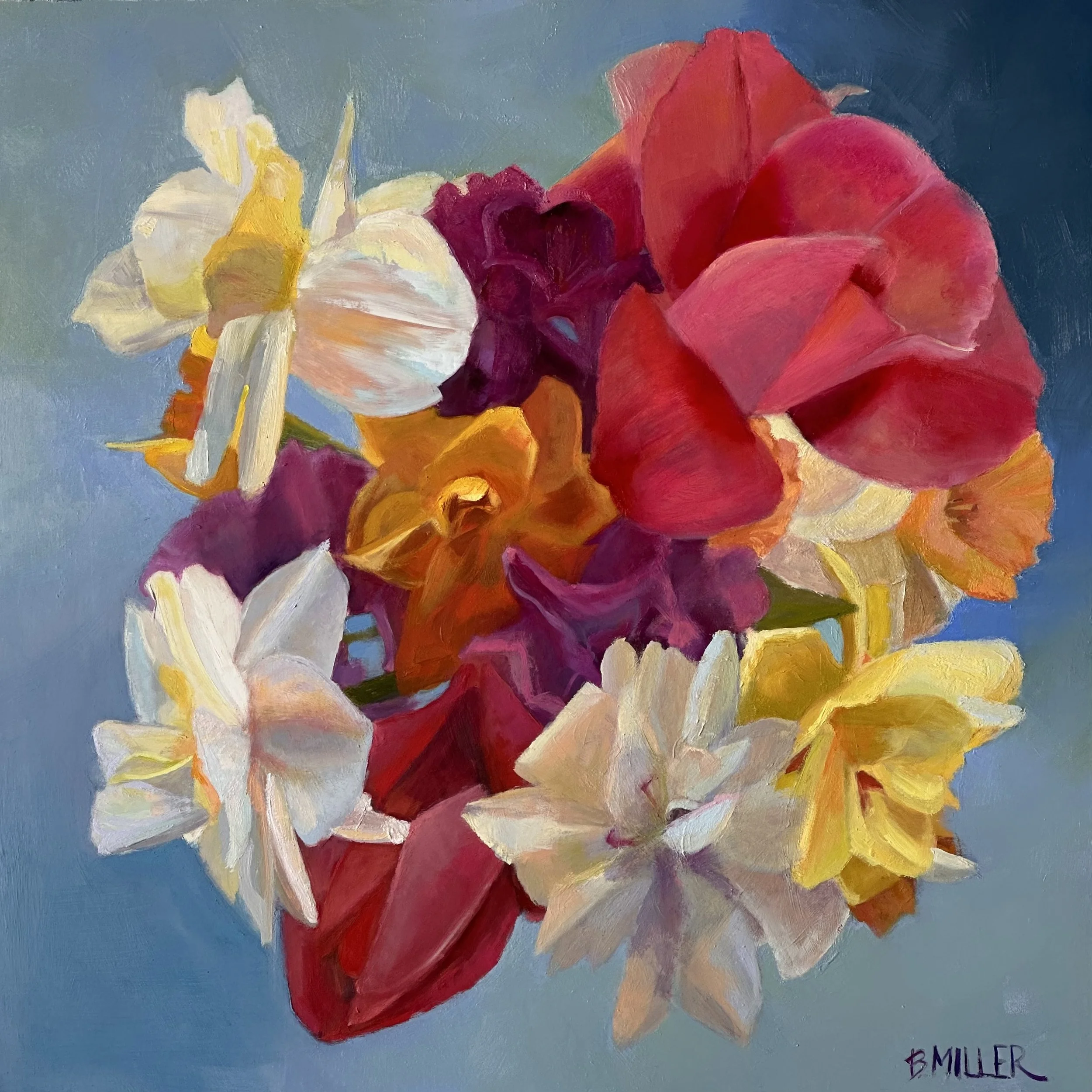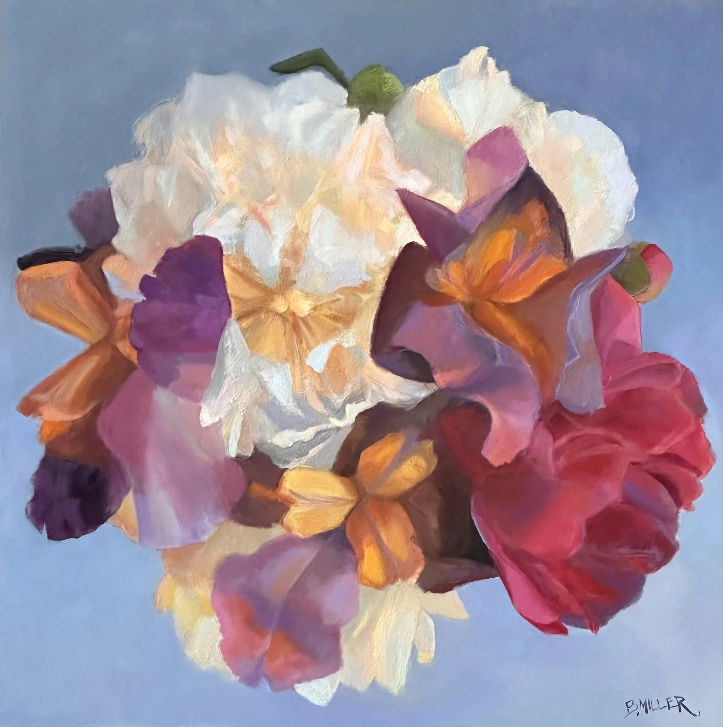 Flower paintings have long held a special place in art history. They symbolize growth, emotion, seasonality, and cultural significance. I create flower oil paintings because there’s something especially compelling about painting flowers with oil paint. It brings depth, luminosity, and layering, making each flower look alive and almost tactile. Layering colors showcases the complexity of each petal and stem. Every bouquet and color palette evokes different energy and emotion. It’s about capturing something beautiful.