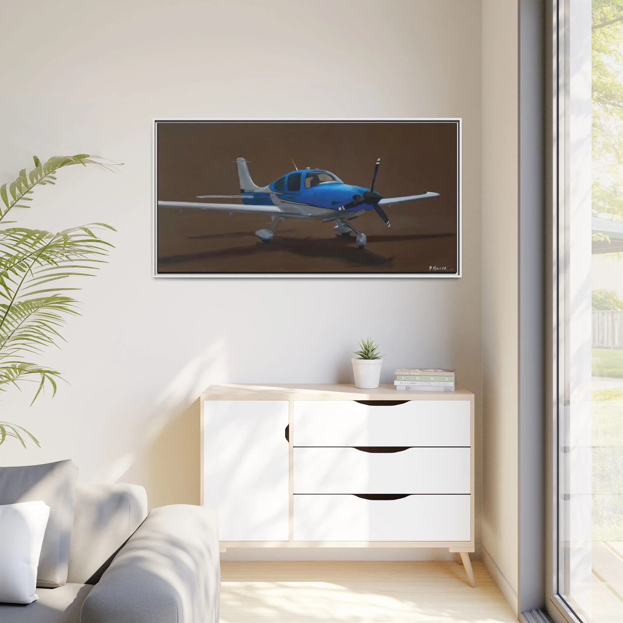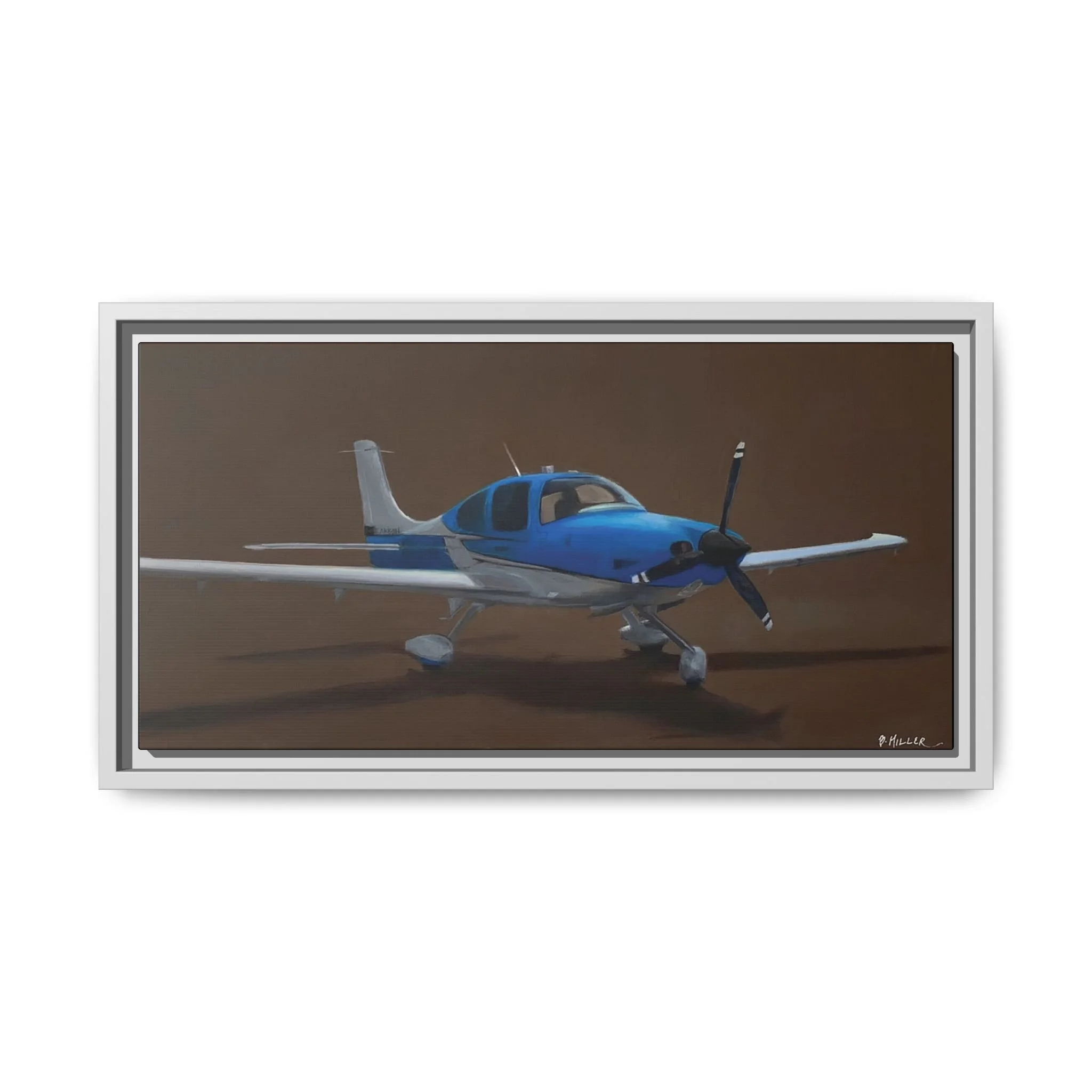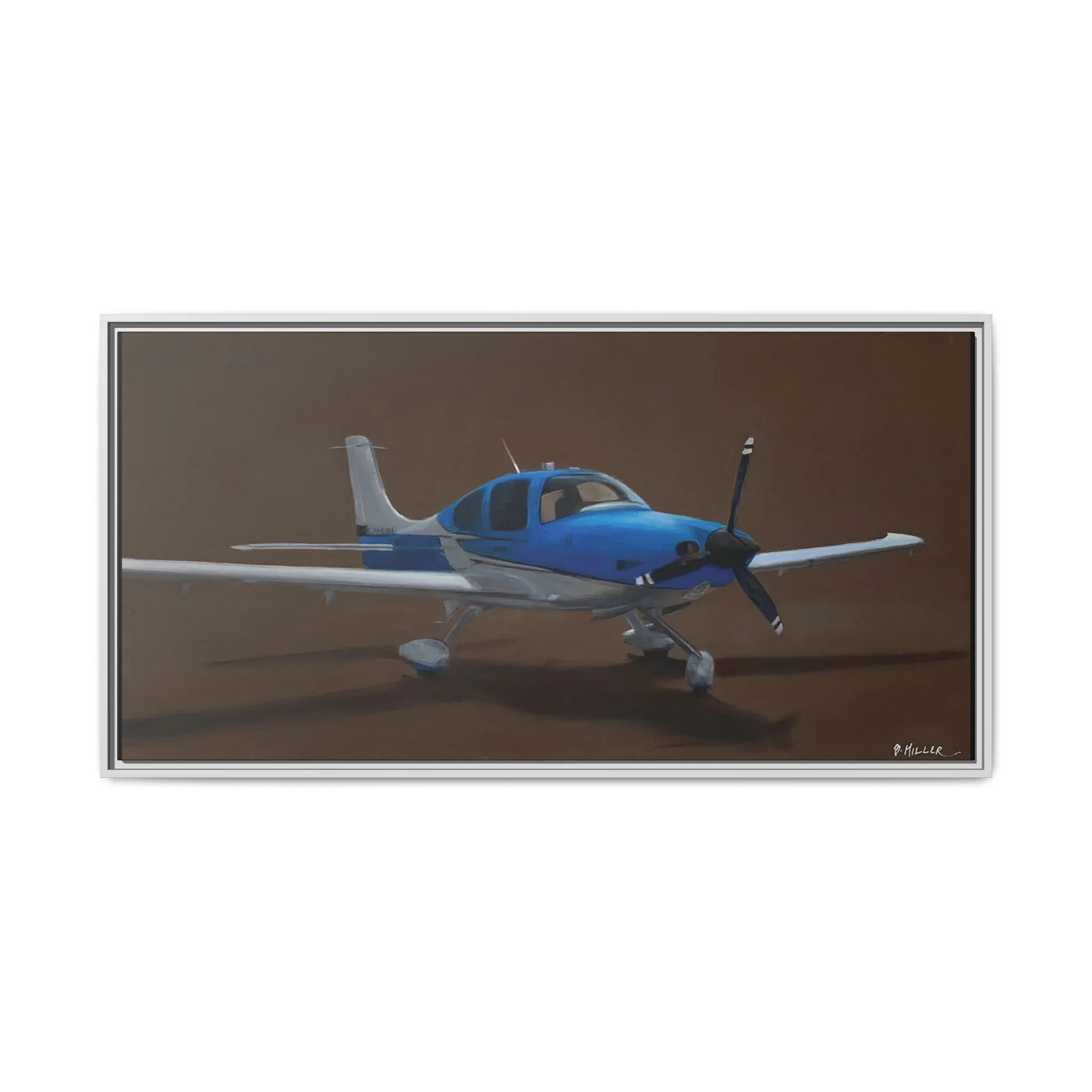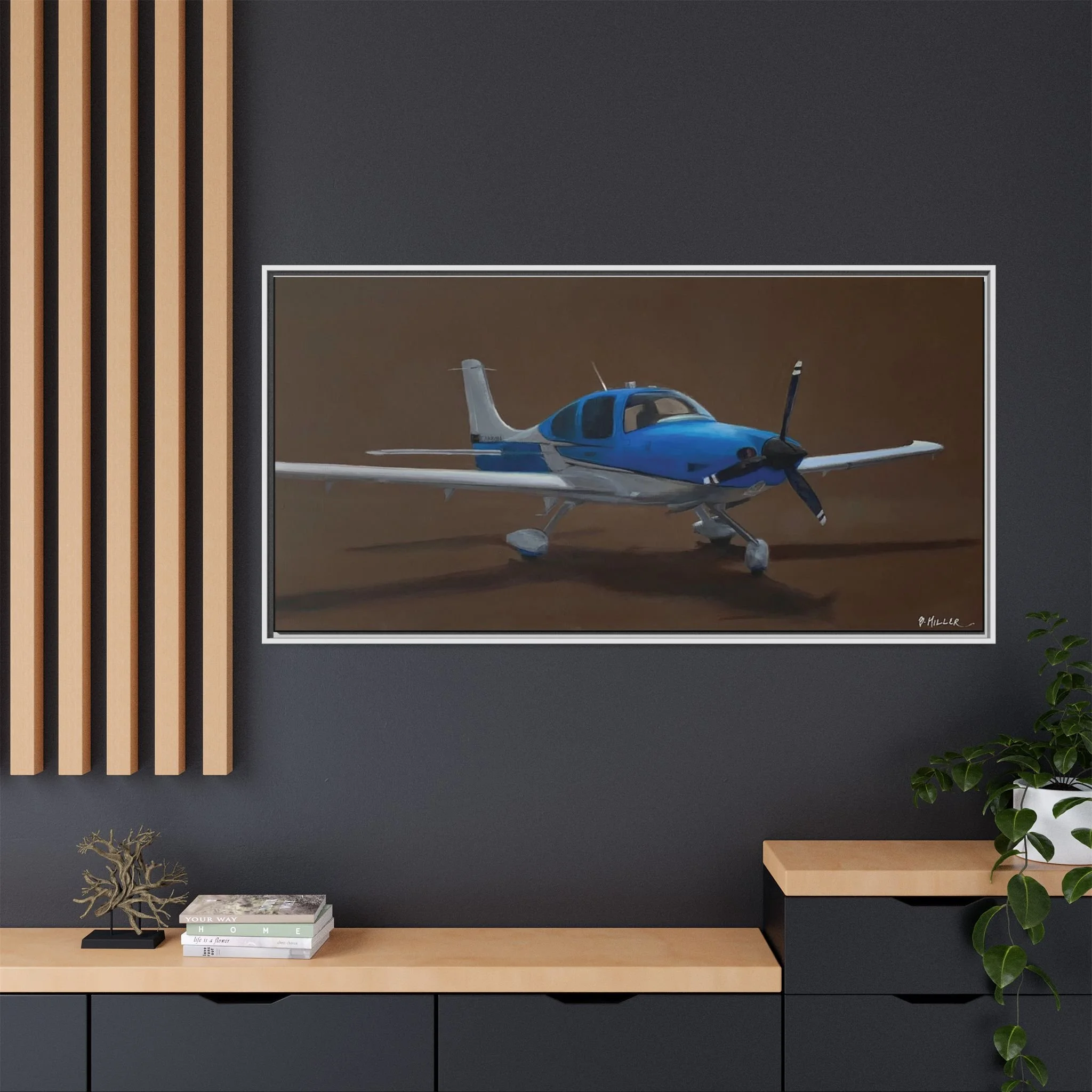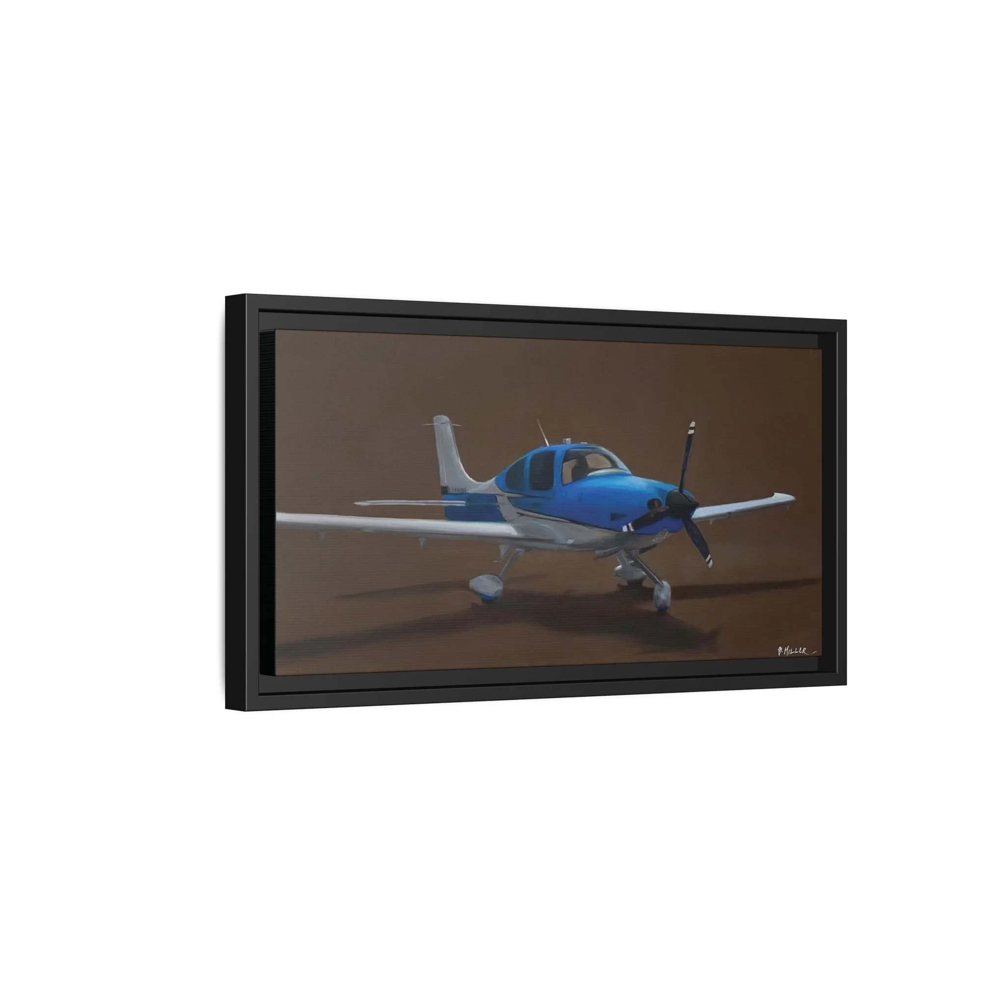 A beautiful blue Cirrus SR22 sits proudly on this framed matte canvas print. Perfect for aviation enthusiasts and pilots, this vibrant piece adds a touch of elegance to any space. Ideal for gifting on birthdays, holidays, or special occasions.