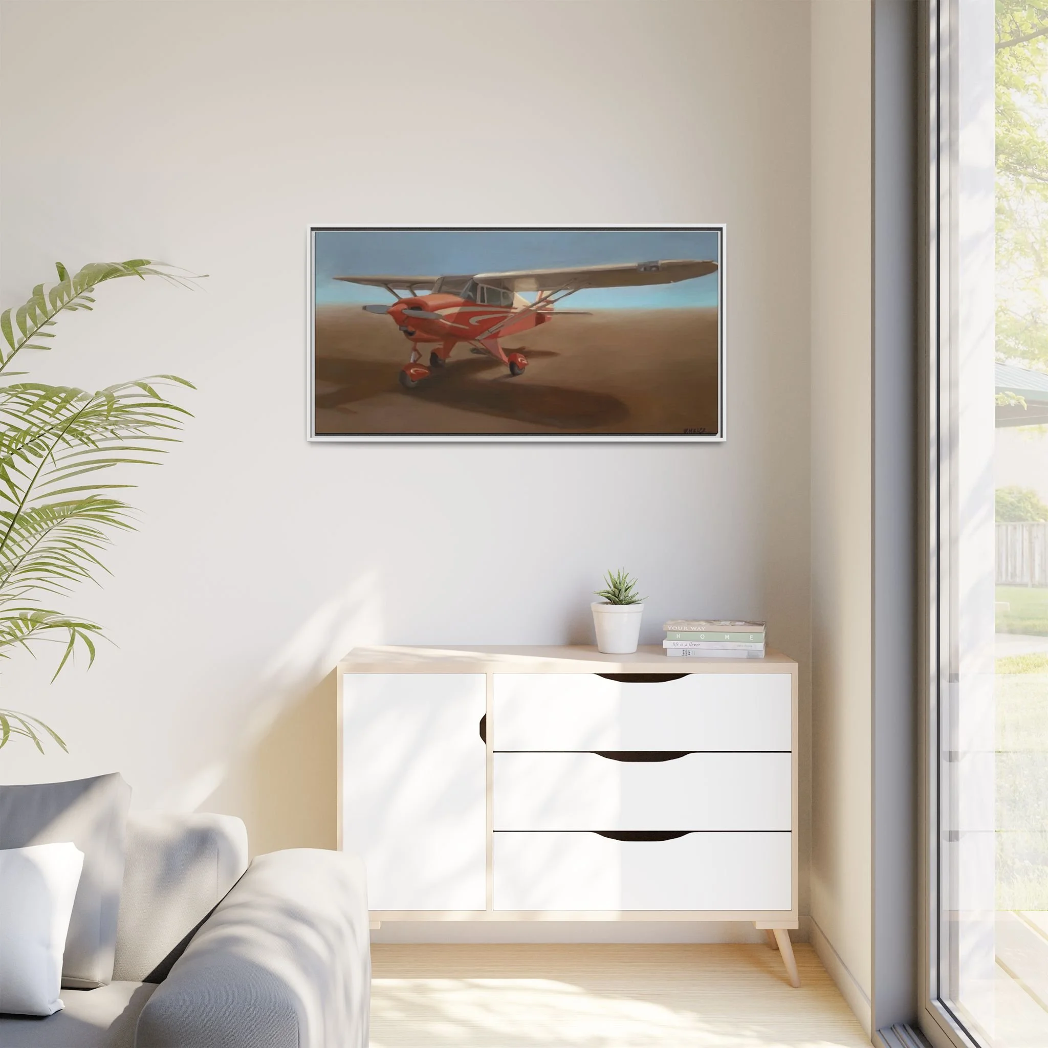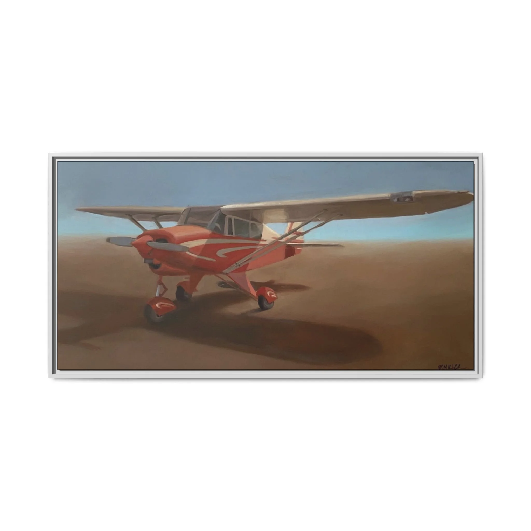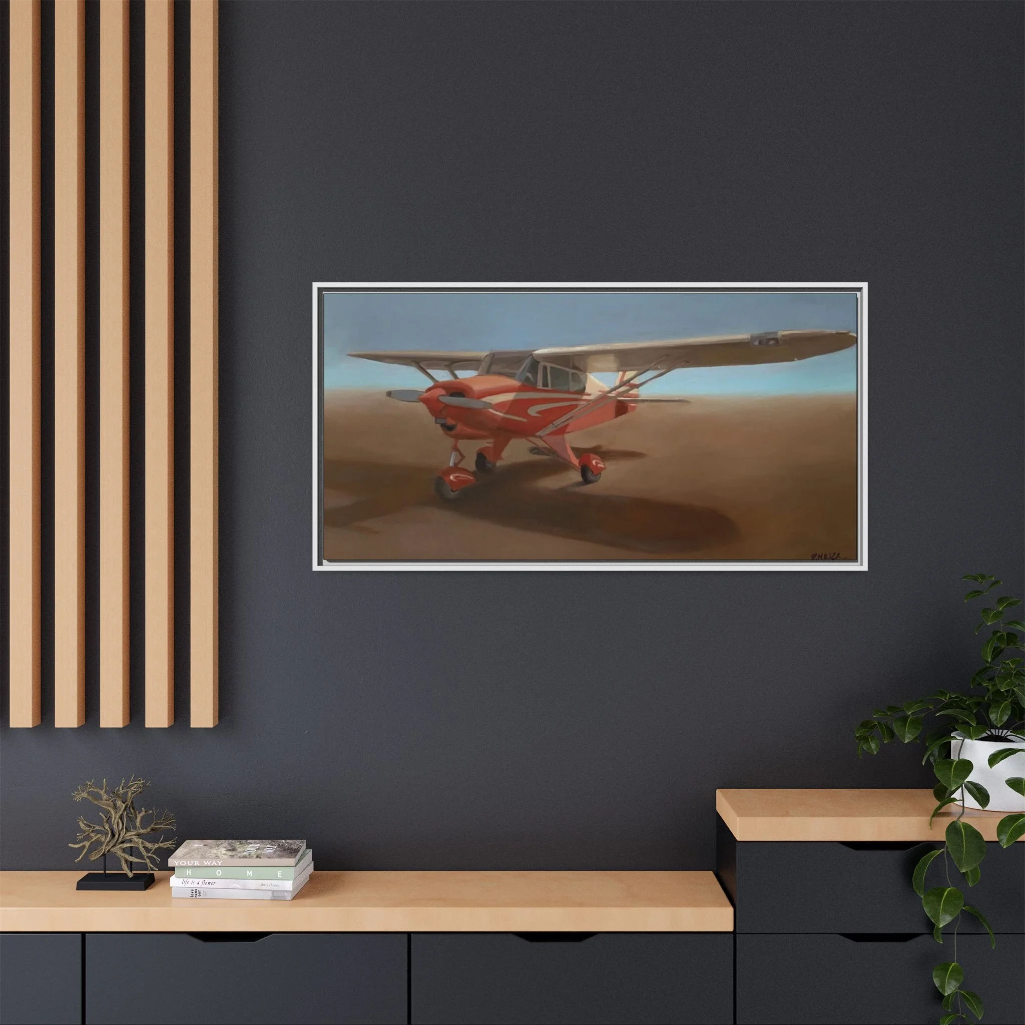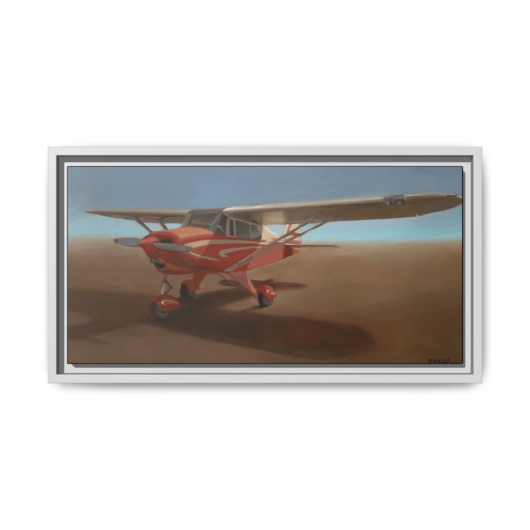 A Piper Tri-Pacer sits proudly in front of the Piper factory in Vero Beach, Florida in this framed matte canvas print. This painting evokes memories of flying in this historic aircraft and is perfect in a grandchild's room or an adult's office.